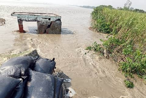 तटबंध कटने से समदहा और चहमलपुर जंगल नंबर तीन के गांव जलमग्न