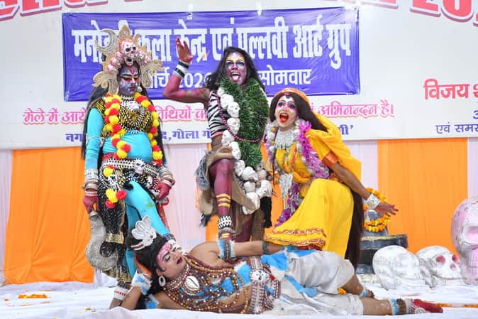 मनोहारी कला केंद्र व पल्लवी आर्ट ग्रुप के कलाकारों ने सुरेश ठाकुर और सोनू के निर्देशन में गणेश वंदना, हनुमान जी की झांकी और राधा-कृष्ण प्रस्तुति से समा बांधा। शिवा अग्निहोत्री ने मोहे रंग दे लाल और विनीत नटराज ने मैं तो रानी बनूंगी बृजधाम की पर प्रस्तुति दी। अन्नू कोहली, हिमांशू वाजपेई, अनिकेत कोहली, राजेश, रितिक और हिमांशू ने महिषासुर वध, कासली अखाड़ा और बृज की होली की झांकियों से दर्शकों को आकर्षित किया। बच्चों के लिए गोरिल्ला नृत्य खास आकर्षण रहा।