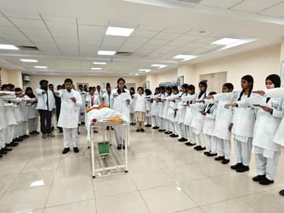 मेडिकल कॉलेज में कैडवर के समक्ष शपथ लेते छात्र। स्रोत : मेडिकल कॉलेज