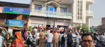 बेहजम में जच्चा-बच्चा की मौत के बाद अस्पताल के बाहर हंगामा करते पीड़ित परिजन और लगी लोगों की भी
