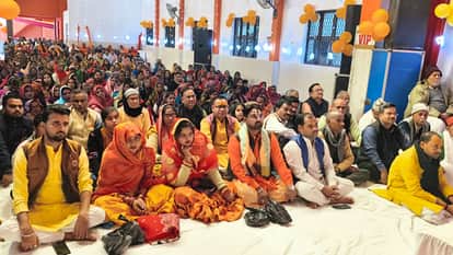 गोला में श्रीराम राजतिलक प्रसंग सुनते श्रद्धालु। संवाद