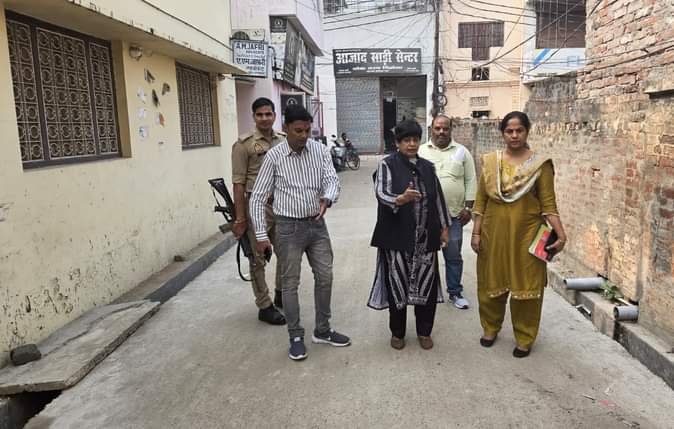 नई बस्ती में बनाई गई सड़क का निरीक्षण करती पालिका अध्यक्ष डॉ.इरा श्रीवास्तव। स्रोत: विभाग