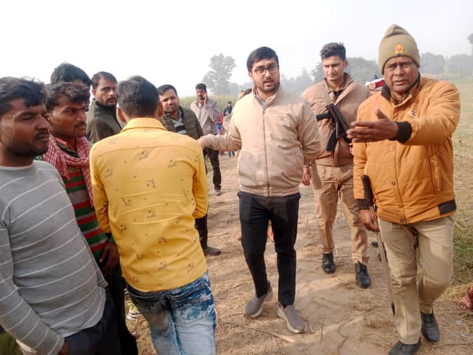 ग्राम गनेशापुर में शव निकालते समय कब्र का निरीक्षण करते हुए एसडीएम चलुवराजू आर। संवाद