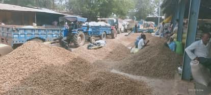 गल्ला मंडी में लगे मूंगफली के ढेर