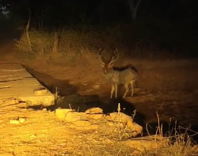 मड़ावरा के जंगलों में सड़क किनारे विचरण करता हुआ बाहरसिंघा