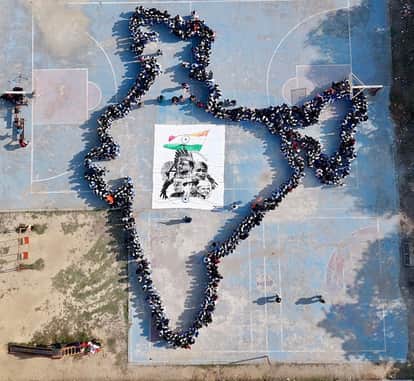 राजकीय कन्या इंटर कालेज में छात्राओं ने मानव श्रृखंला से भारत का नक्शा बनाया।