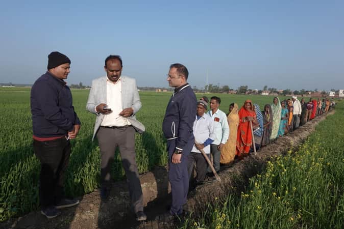 ग्राम धरमौली, ब्लॉक मिठौरा में मनरेगा कार्य का निरीक्षण करते जिलाधिकारी संतोष कुमार शर्मा।