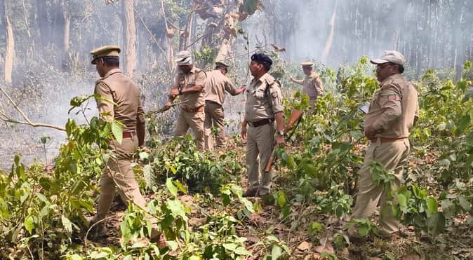 Maharajganj News: जंगल में लगी आग पर वनकर्मियों ने पाया काबू