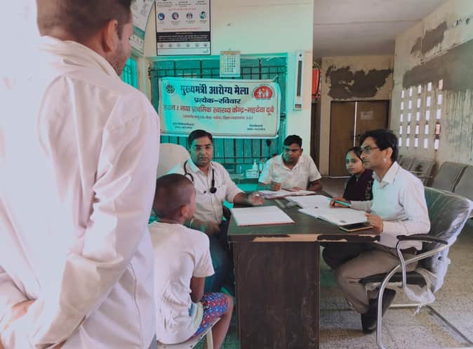 महदेवा दूबे पीएचसी पर इलाज करते चिकित्सक सीबी पांडेय।