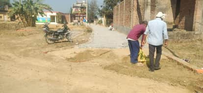 नेशनल अवार्ड के लिए चयनित लक्ष्मीपुर ब्लॉक के पैसिया उर्फ कोनघुसरी में इंटरलाकिंग करते मजदूर।
