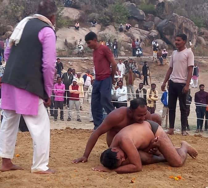 फोटो 25 एमएएचपी 17 परिचय-दंगल में दावपेच दिखाते पहलवान। संवाद