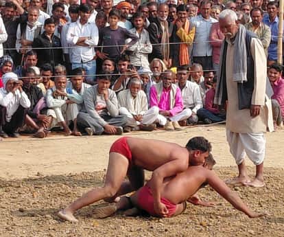 फोटो 20 एमएएचपी 14 परिचय-दंगल में दावपेच दिखाते पहलवान। संवाद