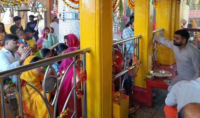 फोटो 25 एमएएचपी 01 परिचय-मां बड़ी चंद्रिका मंदिर में पूजा-अर्चना करते भक्त। संवाद- फोटो : 1
