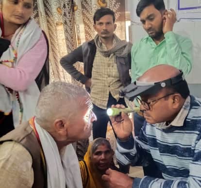 फोटो 12 एमएएचपी 01 परिचय-जिला अस्पताल के कक्ष में मरीज की आंख चेक करते डॉ. एके सक्सेना। संवाद