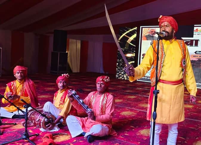 फोटो 12 एमएएचपी 12 परिचय-सूर्य महोस्तव में आल्हा गायन की प्रस्तुति देते आल्हा गायक उमाशंकर सेन।