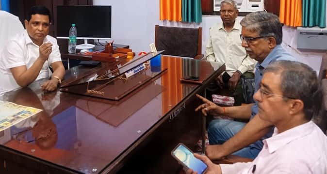 फोटो 22 एमएएचपी 10 परिचय-पेंशनरों की समस्या सुनते अधिशासी अभियंता मोतीलाल। स्रोत: संस्थान