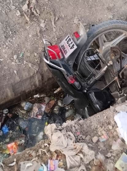 फोटो 07 एमएएचपी 08 परिचय-चंद्रावल मार्ग पर खुले नाले में घुसी बाइक। संवाद