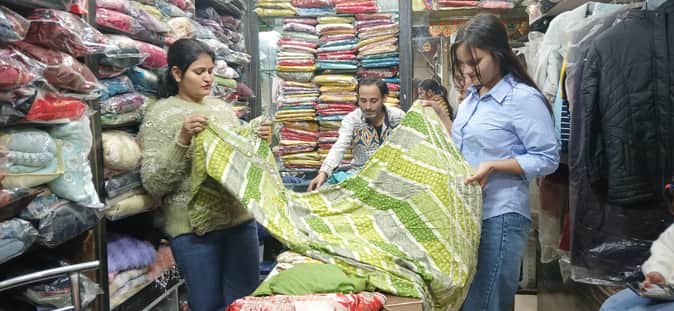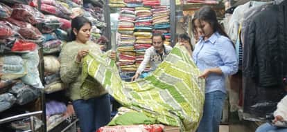 फोटो 23 यादव मार्केट में एक दुकान पर अनारकली सूट देखती ग्राहक। संवाद