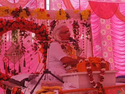 फोटो 28 असरगढी में कथा सुनाते आचार्य सतेंद्र मिश्रा। संवाद