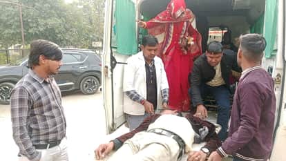 फोटो 1 कार पलटने से हुए हादसे में घायलों को एंबुलेंस से उतारते परिजन। संवाद