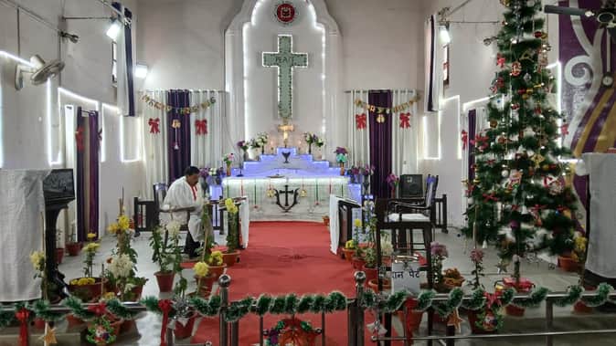 फोटो 5 शहर के चर्च में प्रार्थना करते पादरी दिनेश कुमार सहाय। संवाद