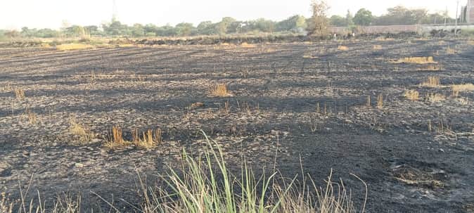 फोटो35 आग लगने से जली गेहूं की फसल। संवाद