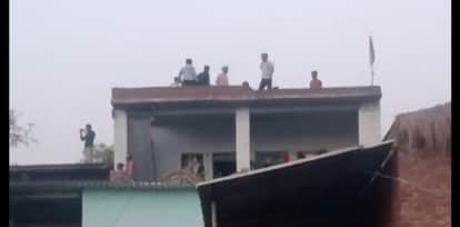फोटो21 गांव बुर्रा में छत से पथराव करते लोग। स्रोत वीडियो ग्रैब
