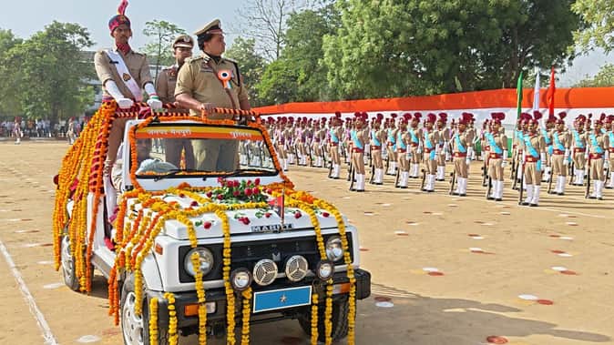 फोटो 1 दीक्षांत परेड समारोह में टोलियों का निरीक्षण करते डीआईजी। स्रोत प्रशासन