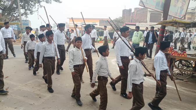 फोटो 2 कुसमरा में पथ संचलन करते बाल स्वयं सेवक। संवाद