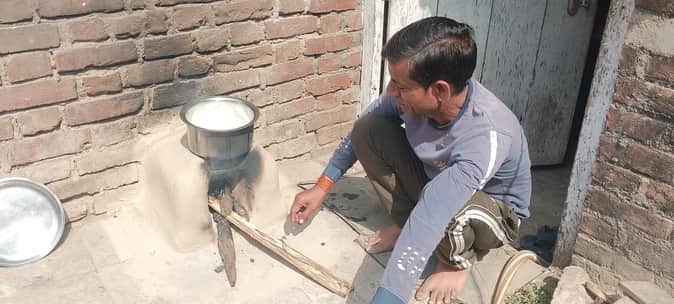 फोटो 16 गैस सिलिंडर न मिलने पर पत्नी के ससुराल जाने के बाद बच्चों के लिए चूल्हे पर दूध गर्म करत