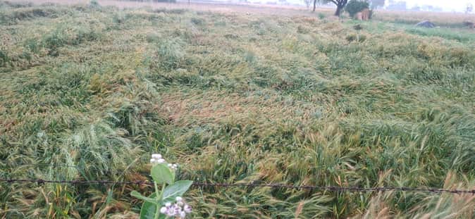 किसानों की चौपट हुई फसल खेतोंं में लेटी हुई।