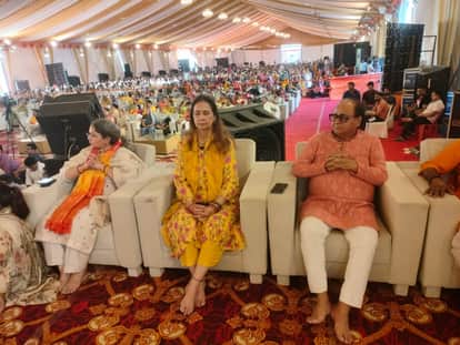 कथा श्रवण करती पूर्व क्रिकेटर नवजोत सिंह सिद्धू की पत्नी नवजोत कौर सिद्धू।