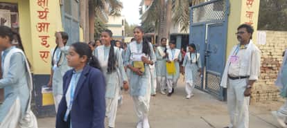 मधुबन के सुभागी देवी इंटर कालेज से परीक्षा देकर बाहर निकलती छात्राएं।संवाद