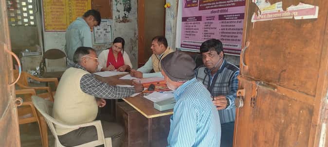 खुरहट प्राथमिक स्वास्थ्य केंद्र पर सीएम जन आरोग्य मेले में मरीज को देखते चिकित्सक डॉ कमलेश गुप्