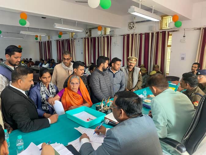 संपूर्ण समाधान दिवस में फरियादियों की समस्याओं को सुनते जिलाधिकारी एसपी और अन्य अधिकारी