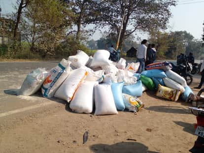 Mau News: सड़क पर पलटी चावल लदी पिकअप, एक घंटे तक बाधित रहा आवागमन