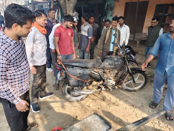 Mau News: वेल्डिंग के दौरान बाइक में लगी आग