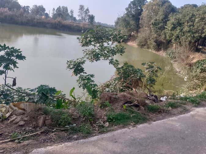 कुर्थीजाफरपुर वार्ड नंबर 11 स्थित सुंदरीकरण के लिए अमृत सरोवर योजना में चयनित पोखरी। संवाद