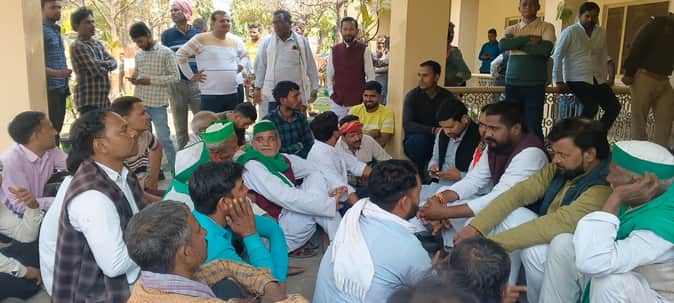 चीनी मिल परिसर में धरना देते किसान। संवाद