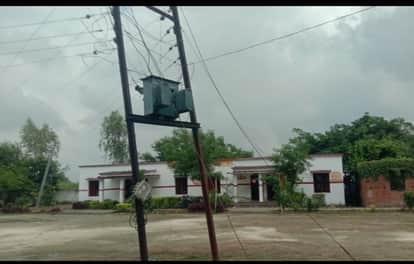 रानीपुर ब्लाक क्षेत्र के कम्पोजिट विद्यालय पिरूवा के परिसर में में लगा ट्रांसफार्मर और गुजरा हा