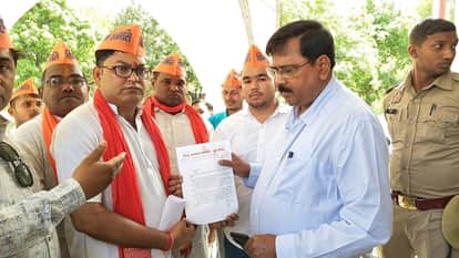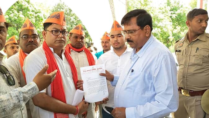 कलेक्ट्रेट पर अपनी मांगों को लेकर सिटी मजिस्ट्रेट को ज्ञापन सौंपते हिदू जागरण समिति।स्रोत-स्वयं