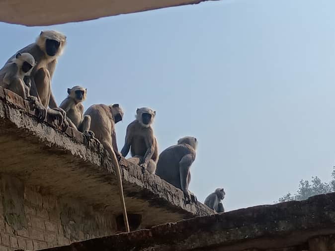 इंदारा में बंदरों का आतंक, एक घर पर बैठा बंदरों का झुंड