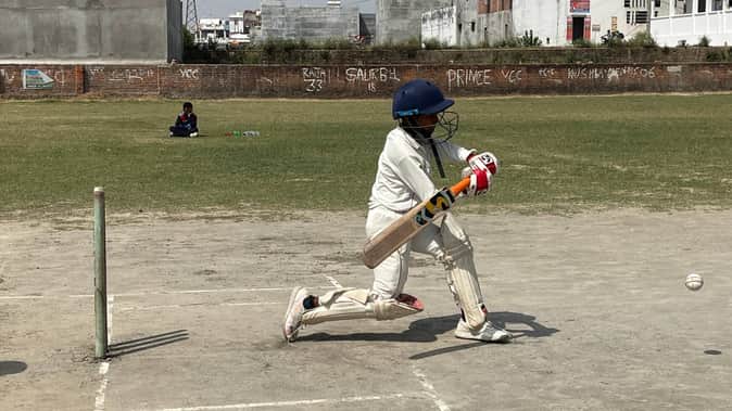 नगर के सहादतपुरा स्थित मैदान पर शाट लगाता प्रतीक क्रिकेट एकेडमी मऊ का बल्लेबाज।संवाद