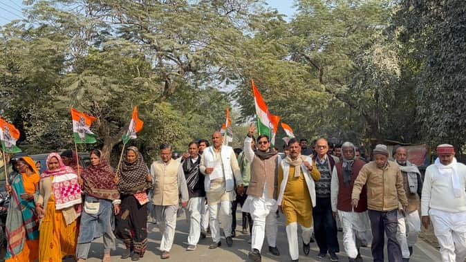 कलेक्ट्रेट पर जुलूस की शक्ल में ज्ञान सौंपने जाते कांग्रेस पार्टी का प्रतिनिधिमंडल।स्रोत-स्वयं