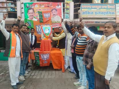 दोहरीघाट में नेताजी सुभाष चंद्र बोस की जयंती पर श्रद्धांजलि अर्पित करते भाजपा कार्यकर्ता।संवाद