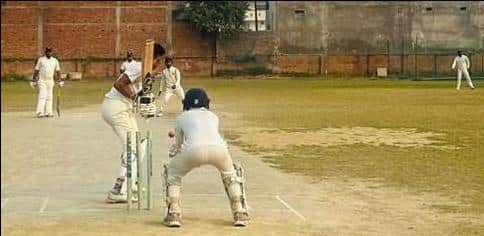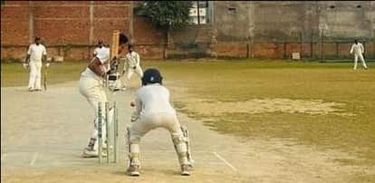 नगर के सहादतपुरा स्थित मैदान पर मैच में खेलते शेरॉफ क्रिकेट एकेडमी ने अंजय क्रिकेट एकेडमी के