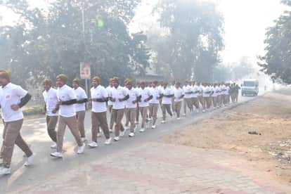 नगर में रन फार रिवर मैराथन में प्रतिभाग करते प्रशिक्षु आरक्षी।स्रोत-स्वयं