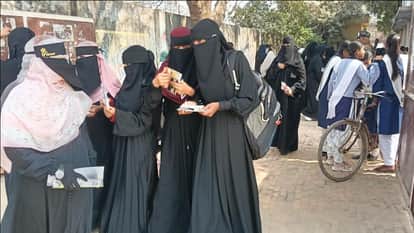 नगर के सोनी धापा इंटर कॉलेज से यूपी बोर्ड की परीक्षा देकर निकलती छात्राएं