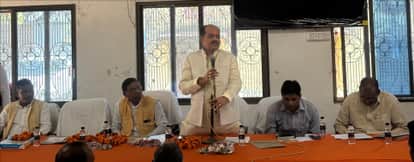 कोपागंज ब्लॉक सभागार में क्षेत्र पंचायत की बैठक को संबोधित करते जिला पंचायत अध्यक्ष मनोज राय।