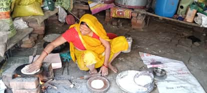 घोसी तहसील क्षेत्र में चूल्हे पर खाना पकाती महिला। संवाद